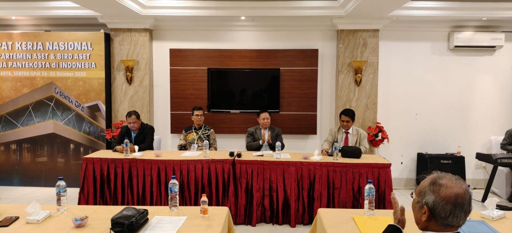 Bapak Ketua Umum Majelis Pusat GPdI Pdt. Dr. Johnny W Weol menutup renungan firman Allah pada pembukaan RAKERNAS Aset ini dengan arahan agar proses rapat kerja nasional ini berlangsung dalam kesatuan roh. Dalam pertolongan Roh Kudus. Hari ini tim kerja Dep P2-A merancang beberapa sesi hingga besok siang sesi Ibadah Penutupan