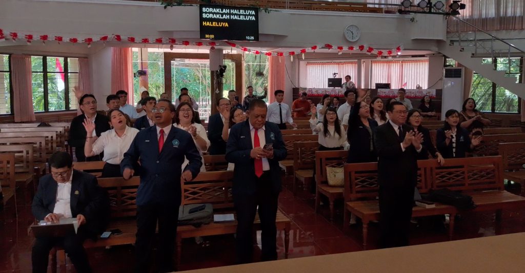 Ibadah diawali dengan pujian yang menggugah hati, menciptakan suasana yang penuh syukur dan harapan. Selanjutnya, Firman Tuhan disampaikan oleh Pdt. Dr. Liem Sutikto, M.Th., M.Pdk., yang mengangkat tema “Menjadi Hamba Tuhan yang Teruji di Era Digitalisasi.” Dalam khotbahnya, beliau mengutip ayat dari 2 Timotius 2:15, yang berbunyi, “Usahakanlah supaya engkau layak di hadapan Allah sebagai seorang pekerja yang tidak usah malu, yang berterus terang memberitakan perkataan kebenaran itu.”