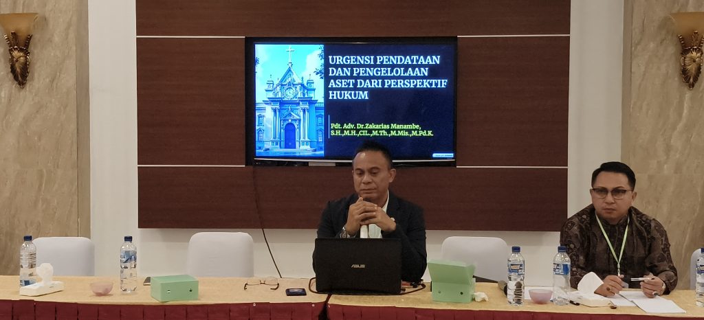 Pada sesi Dr. Zakarias Manambe peserta Rakernas dibekali pemahaman terhadap dasar hukum dalam rangka pendataan dan pengawasan aset GPdI.