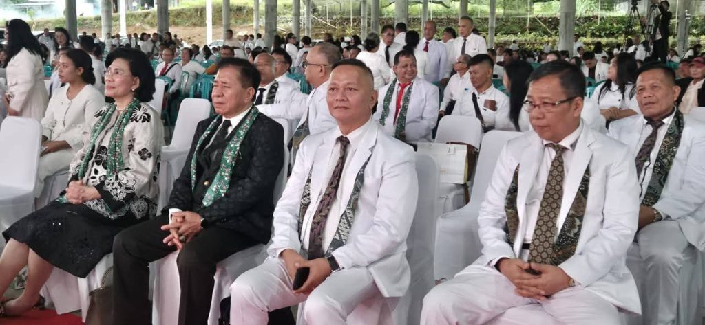 Di kursi baris terdepan tampak Ketua Majelis Daerah GPdI Sulawesi Utara Pdt. Yvonne I Awuy – Lantu yang juga adalah Wakil Ketua Penasihat Majelis Pusat bersama Bapak Ketua Umum Majelis Pusat Pdt. Dr. Johnny W Weol, Gubernur Sulawesi Utara Bapak Yulius Silvanus, dan tamu undangan VVIP lainnya.