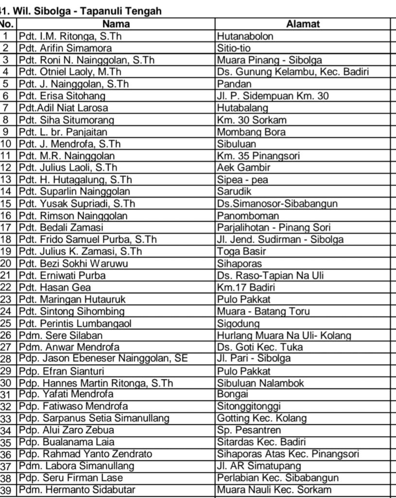 Di bawah ini kami lampirkan laporan emergency dari perangkat pemerintah setempat dan daftar GPdI di Tapteng