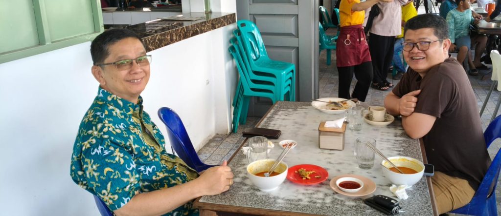 Setelah menyelesaikan tugas selama sepekan di Pangkalan Kerinci Pelalawan Riau, infokomgpdi.com menyempatkan diri mengunjungi proyek Majelis Daerah GPdI Riau. Sesudah bermalam di Pastori GPdI Rumbai Pekanbaru Riau. Pagi ini Ketua Panitia Pembangunan Pantekosta Center Riau Pdt. Iwan Melkisedek ajak infokom GPdI sarapan pagi di luar. Di sebuah tempat makan favorite di Pekanbaru bersama anak mantu tersayangnya kami menikmati breakfast special. Sesudah sarapan ini hari pak Iwan sudah berencana tinjau proyek PCR di Palas Pekanbaru.