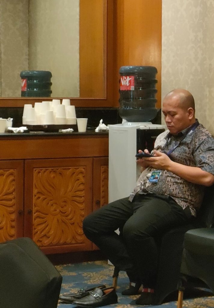 Sore ini pak Rex tampak duduk di kursi belakang mengikuti sesi pleno paripurna yang dipimpin oleh Departemen PWJ Majelis Pusat sambil melakukan koordinasi tugas kepada bidang-bidang pelayanan panitia.